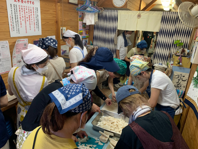 瀧校長、富田先生、本部役員、中一学級委員一五名で、釜ヶ崎炊き出しのお手伝いに参加致しました。